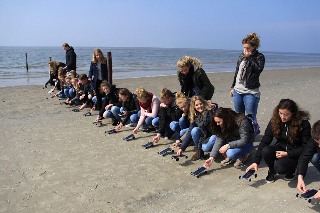 All the students were challenged to construct the most clever and fast car. A solar car race took place on the beach of Ameland. The students were very enthusiast about building their own solar-cars and about the race.