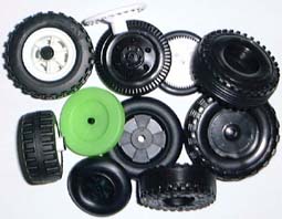 Wheels support the chassis and allow the car to roll. Powered wheels also transfer a force to the ground that can make the car move.