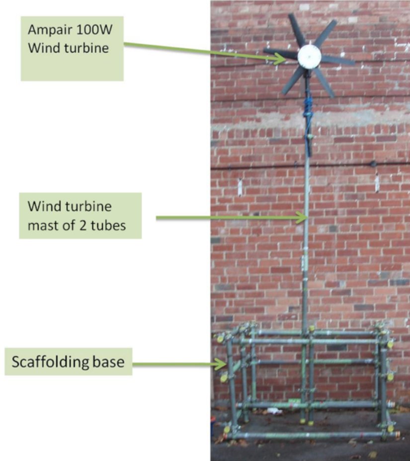 • 2 colour-coded scaffolding tubes that form the turbine mast